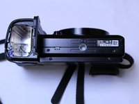 Position the camera with the bottom facing upwards and the lens facing away from you.