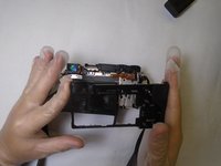 Gently pop off the top case of the camera using your fingers or a plastic opening tool.