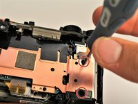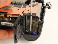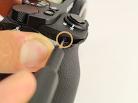 Remove one 2.5 mm JIS 00 screw from where the shutter button assembly used to be.