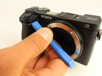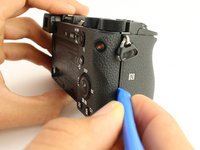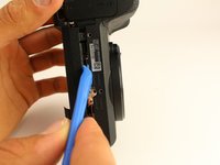 Use the plastic opening tool to begin prying off the back of the camera from the side.