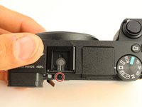 Remove the 2.5 mm JIS 00 screw from the side of the camera near the viewfinder.