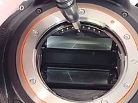 Using tweezers grab the focus lens on the side by the two tabs that are on it.