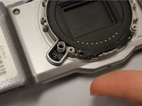 The lens release button is a component of the camera body, and is used to release the lens from the camera body. This button can become stuck, stopping one from removing or switching lenses.