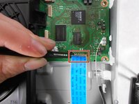 Using the plastic tweezers, carefully remove the ribbon cable from the motherboard.