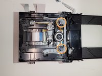 Using tweezers, lift the black tab on the connector of the large ribbon cable on the disk reader.
