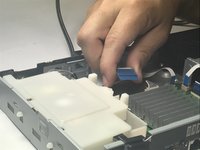 Lightly apply downward pressure on the black covering on the disk tray until it comes off.