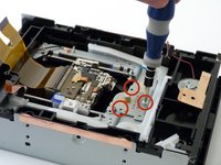 Now you can see the inside of the optical drive. The motor is held in by three small 5mm silver screws. Remove them.
