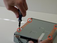 Remove the four 10mm silver screws on the bottom of the optical drive.