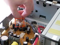 Pull off the bottom metal panel of the optical drive. You will see the main circuit board underneath.