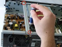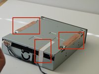 Unscrew the two metal clamps on both sides of the optical drive by removing three sets of screws: