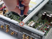 Remove the two 10mm silver screws holding the front panel on with the Phillips #2 screwdriver, located on the top side of the front panel.