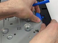 Using the plastic opening tool, open one of the tabs on the bottom of the device.