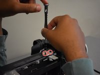 • Remove the two screws (2mm x 6mm) under the flat silver piece using the Phillips #1 screwdriver. The silver metal clip comes off once the crews are removed.