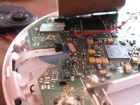 • Now for the power wires. Pry up on the side opposite of the wires.