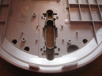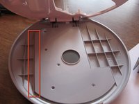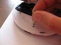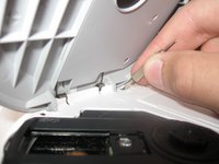 • Insert the tip of a screwdriver between the white upper layer and the gray lower layer. Carefully pry apart. There are small clips that help hold the two layers together and you don't want to snap them.
