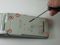 Unscrew the five 2.5mm screws on the back panel with a Phillips #00 screwdriver.