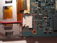 Next, use your screwdriver to lift up on the connectors that connect the scroll wheel to the circuit board. Then pull out the ribbon.