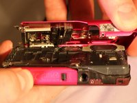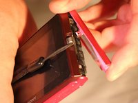 Using a Phillips #00 screwdriver, remove one 2 1/2mm screw located near the wrist strap.