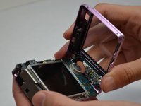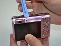 Using a plastic opening tool, lift and remove the silver piece on the right side of the camera.