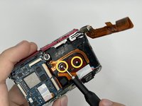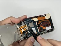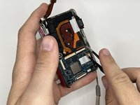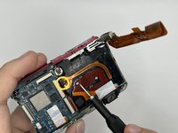 Gently, lift the LCD and carefully open the camera to disconnect the LCD ribbon cable from the motherboard.