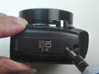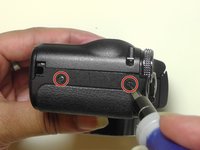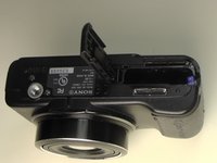 Slide open the battery cover and remove the battery and the Memory Stick Duo.