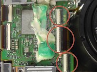 Carefully flip up the three black clasps holding the lens cables to the motherboard.