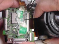 Lift the lens and attached ribbon cables from the camera in order to switch this lens with a new one.