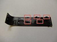 The connections (red squares) have small black retaining clips. Using a plastic opening tool, lift upward towards the cable to unlock.