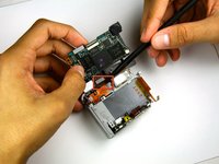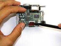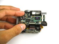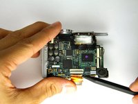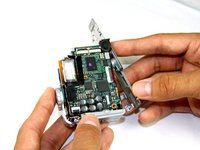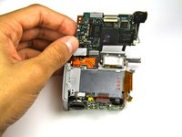 Pull the motherboard out of the slot on the side of the camera where the lens used to be attached.