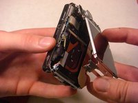 Paying careful attention to the right side's electrical wiring, gently pull the left side of the LCD plate away from the rest of the camera.