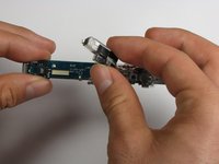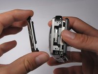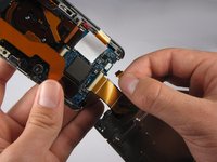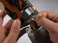 Carefully remove the left ribbon-wire from the top camera panel by pulling where the wire connects to the top.