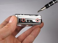 Remove the 2.5mm Philips #0 screw at the top of the camera.