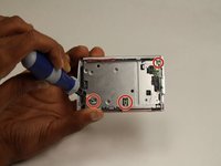 Using the Phillips #00 screwdriver, unscrew the outside screws from the frame of the camera.