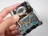 Remove the orange cable that is attached between the top of the camera and the chip. It should slide straight out with a little bit of force.