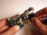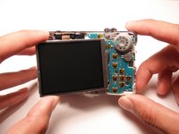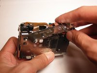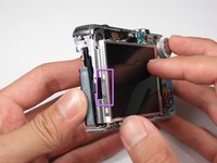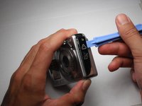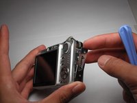 Remove the screw with a Phillips #00 screwdriver from the left side of the camera (with '3x optical zoom' engraved on the side panel).
