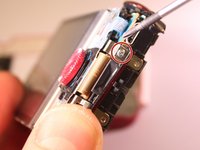 Using a pair of tweezers, remove the blue ribbon from its connection located toward to the top right of the device.