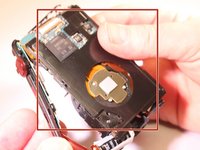 After the LCD screen has been removed there is a black metal plate that can be pulled off revealing the motherboard and the lens.