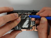 Using the plastic opening tools, carefully pry off the copper casing at the two pictured points.