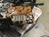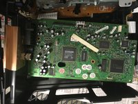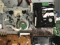 Now you can unscrew the VHS receptor and remove that to be able to access, unscrew and remove the final piece, the large motherboard.