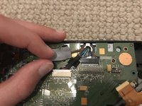 I remove these 2 ribbon cables by pulling back on the black plastic piece gently, and then pulling out the cable.