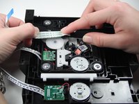 Carefully remove the white ribbon cable from the brace holding it in place by sliding it out towards you.