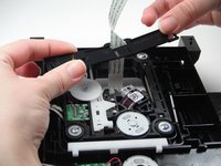 Remove the two #1 Phillips screws (silver, 3/16") that attach the DVD drive to the bottom of the DVD player.