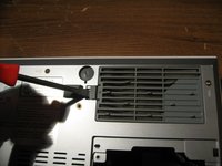 First we are going to remove the Lamp by removing the screw in the first image, and opening and removing the door to the lamp