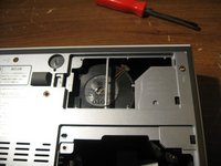 Flip the unit over carefully and pry the case off working around the edges. Take note there is a ribbon cable that runs from the outer control panel to the mainboard.