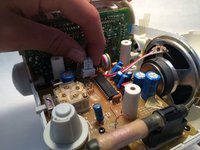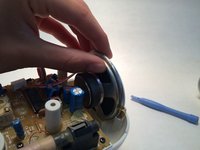 Detach the top of the plastic casing. Use a Phillips head screwdriver to unscrew the three bottom screws.