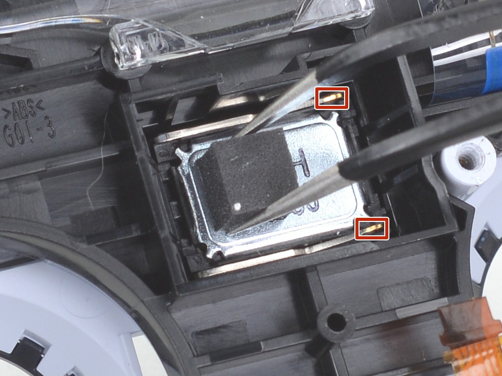 Use a pair of tweezers or your fingers to remove the three conductive silicone rubber pads from the inside of the front case.