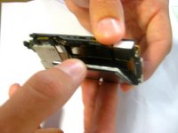 After removing the keypad, gently pry apart the screen from the frame of the phone using your fingers and thumbs on opposite sides as shown.