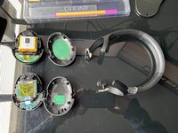 • With one hand holding the cup and the face plate with the NFC antenna, gently lift the foam tape holding the headband cable onto the circuit board below.