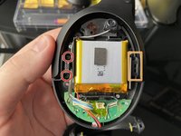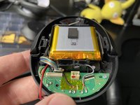• The battery and headband cable held in place against the PCB and internal enclosure of the Right Speaker with foam tape. The ZIF connector the touchpad is to the side and not covered in tape.