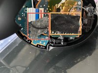 • Another thin layer of tape below it holding the headband cable and NC microphone cables to the mainboard.
